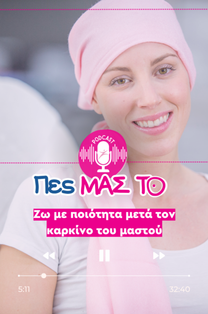 Σε αυτό το επεισόδιο του podcast "Πες ΜΑΣ ΤΟ" θα μιλήσουμε για την ποιότητα ζωής μετά τη διάγνωση του καρκίνου του μαστού. Θα αναφερθούμε σε τρόπους με τους οποίους μπορεί να βελτιωθεί η ποιότητα ζωής μας και στον καθοριστικό ρόλο που μπορεί να έχει σε αυτό το σκοπό η Ιατρική του Τρόπου Ζωής. Κοντά μας έχουμε τη χαρά και την τιμή να έχουμε την αγαπητή κυρία Καλλιόπη Καλαϊτζή.